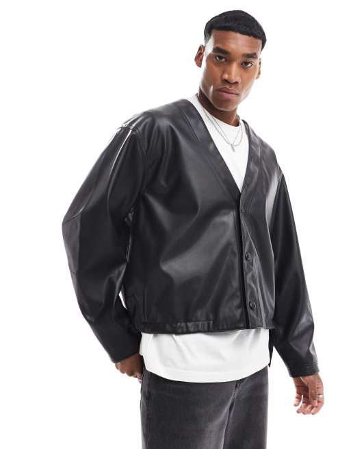 ASOS DESIGN – Svart, boxig oversize jacka i läderimitation
