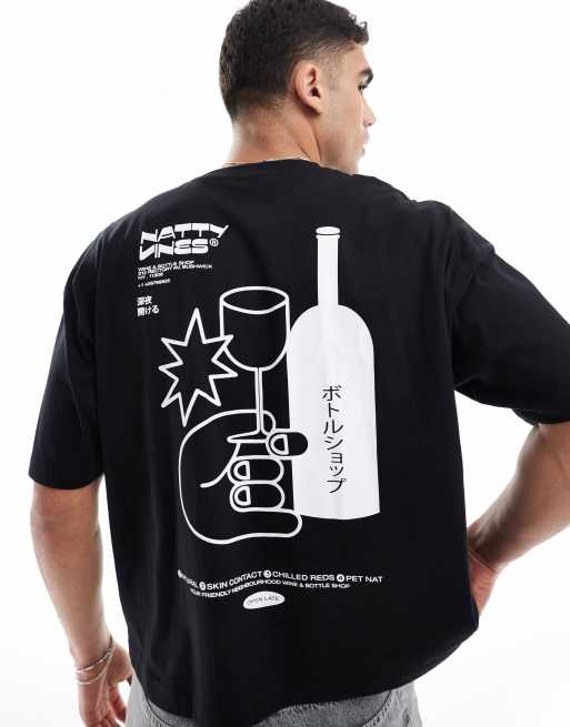 ASOS DESIGN – Svart, boxig t-shirt i oversize med drinktryck