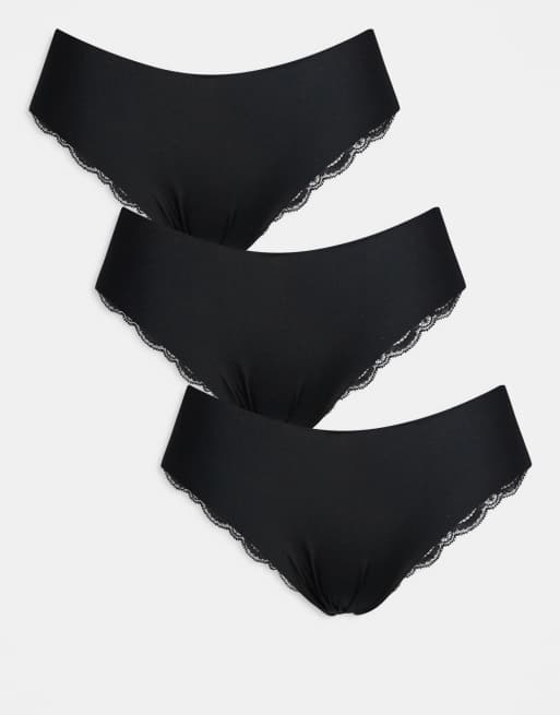 ASOS DESIGN – Svart brazilian-trosor med spets utan synliga troskanter, 3-pack