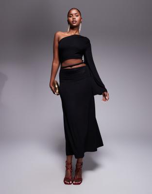 ASOS DESIGN – Svart, enaxlad maxiklänning med utskurna, snurrade detaljer och utsvängda ärmar