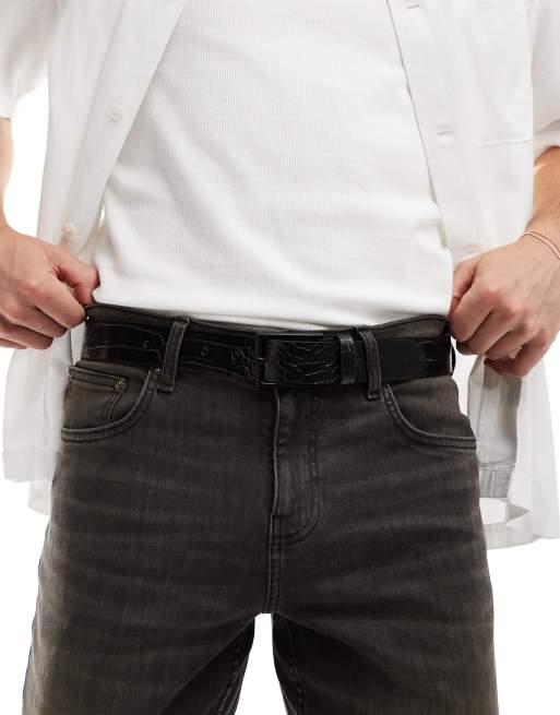 ASOS DESIGN – Svart finskärp i läderimitation med svart spänne och krokodilskinnsmönster