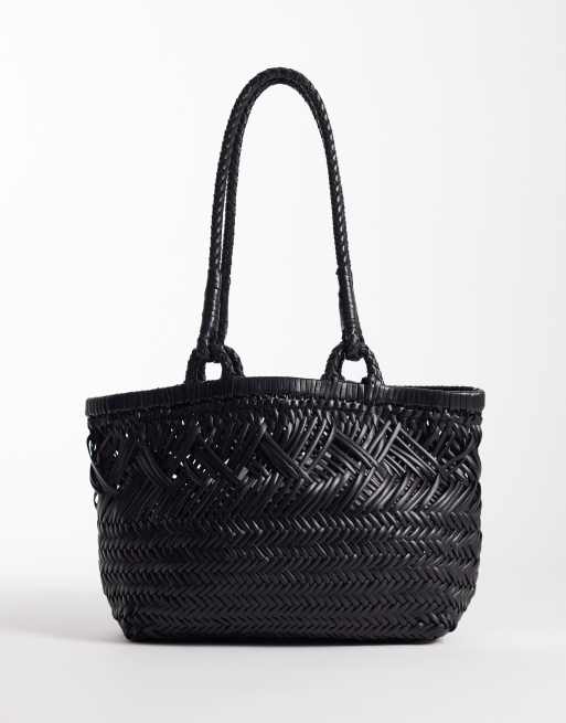 ASOS DESIGN – Svart, flätad toteväska i läder