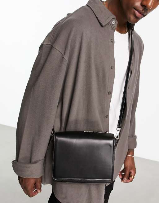 ASOS DESIGN – Svart, fyrkantig väska med dragkedja upptill i läderimitation