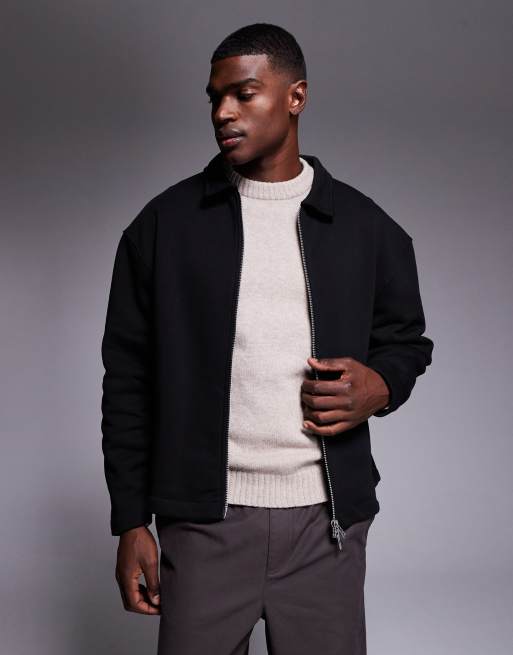ASOS DESIGN – Svart Harrington-jacka i jersey och oversize