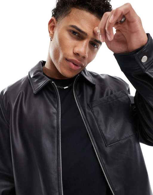ASOS DESIGN – Svart harrington-jacka i läderimitation