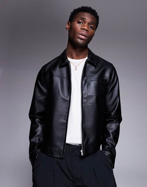 ASOS DESIGN – Svart harrington-jacka i läderimitation