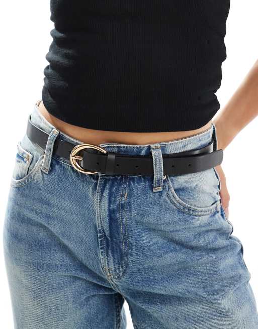 ASOS DESIGN – Svart höft- och midjeskärp med abstrakt, halvmåneformat spänne
