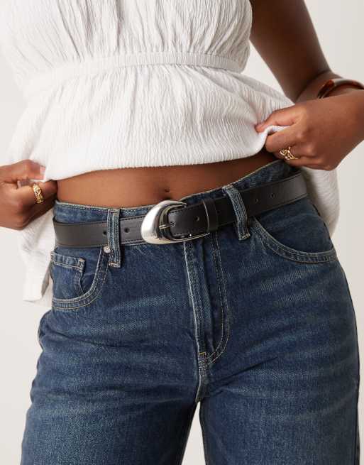 ASOS DESIGN – Svart höft- och midjeskärp med vinklat spänne