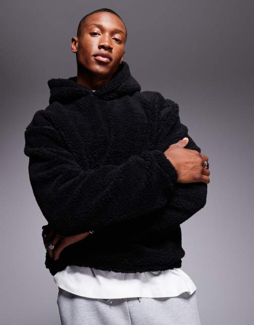 ASOS DESIGN – Svart hoodie i teddy med boxig oversize passform