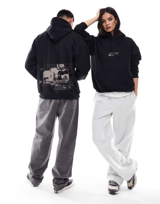 ASOS DESIGN – Svart huvtröja i oversize med tryck framtill och baktill