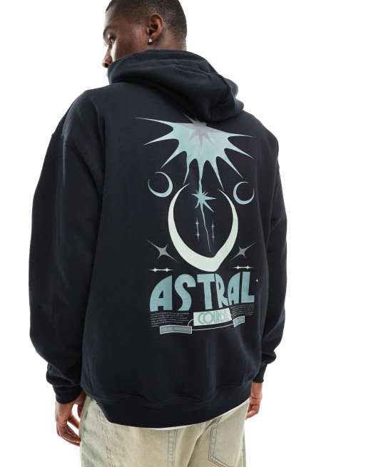 ASOS DESIGN – Svart huvtröja i oversize med tryck