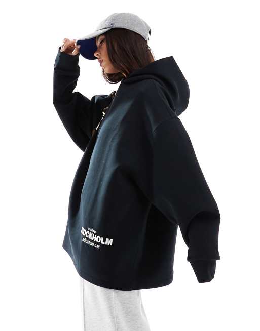 ASOS DESIGN – Svart huvtröja i oversize och scubatyg med Stockholm-tryck
