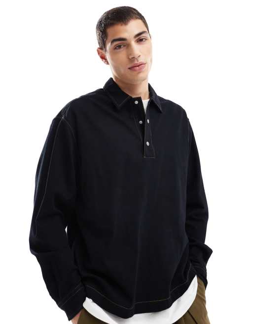 ASOS DESIGN – Svart jeansskjorta i oversize och dra på-stil med boxig passform