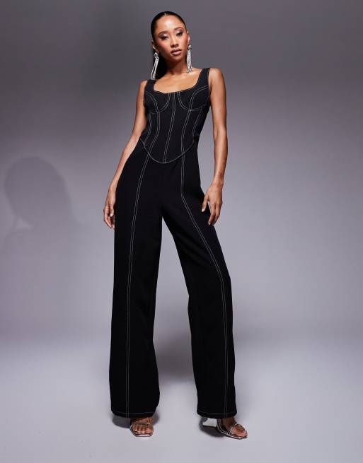 ASOS DESIGN – Svart jumpsuit med synlig söm, struktur och korsettdetalj