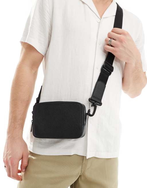 ASOS DESIGN – Svart kameraväska i läderimitation med axelrem