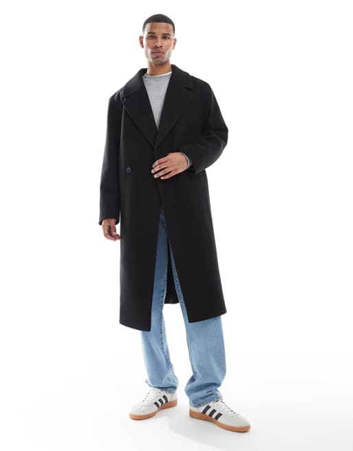 ASOS DESIGN – Svart kappa i ylleimitation och lång modell