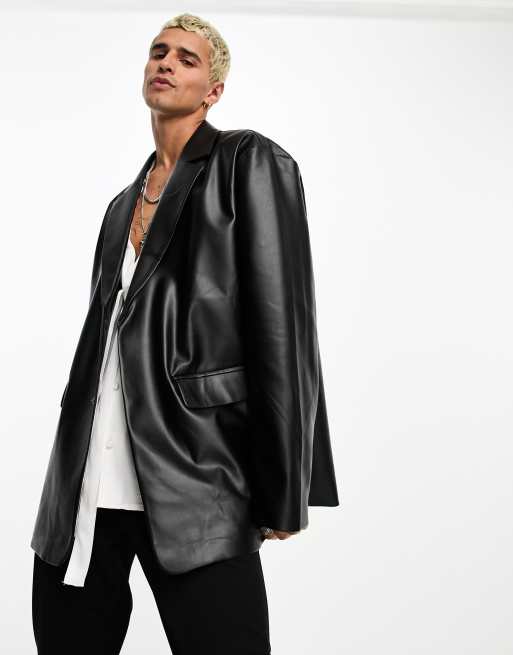 ASOS DESIGN – Svart kavaj i oversize och läderlook