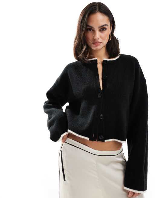 ASOS DESIGN – Svart kofta med rund halsringning och kantrand
