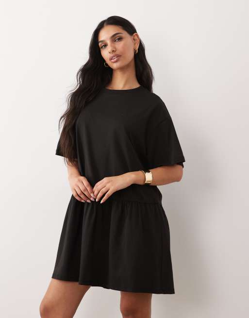 ASOS DESIGN – Svart, kort t-shirtklänning i peplum-modell med korta ärmar och sänkt midja