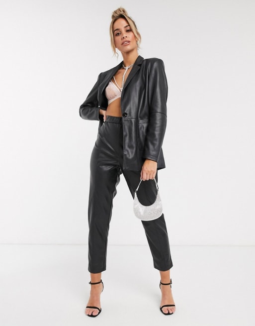 ASOS DESIGN – Svart kostym i läderimitation