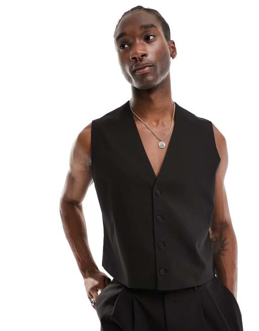 ASOS DESIGN – Svart kostymväst med boxig passform