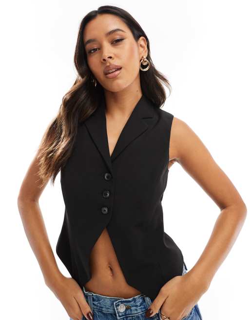 ASOS DESIGN – Svart kostymväst med krage