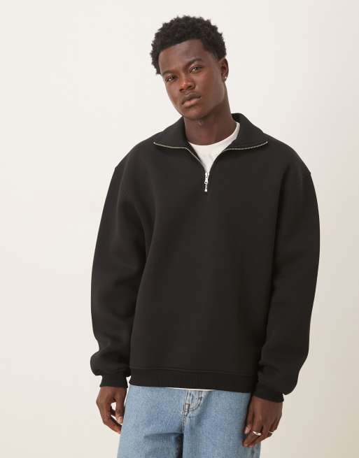ASOS DESIGN – Svart, kraftig, avslappnad sweatshirt med ståkrage och kort dragkedja vid halsen i scubaliknande material