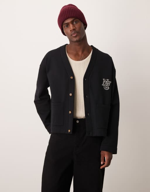 ASOS DESIGN – Svart, kraftig kofta med broderi
