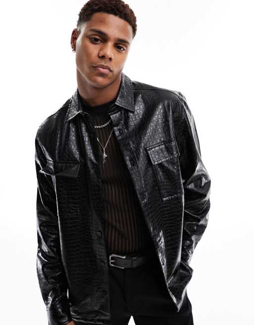 ASOS DESIGN – Svart, krokodilskinnsmönstrad overshirt i läderimitation