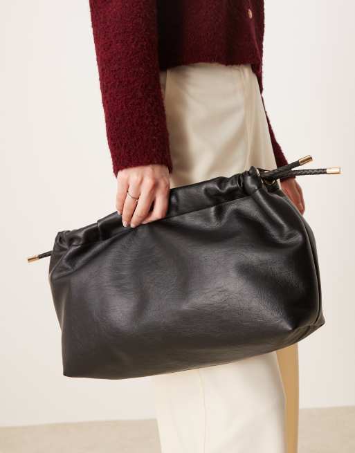 ASOS DESIGN – Svart kuvertväska med ryschad överdel och flätade knytband