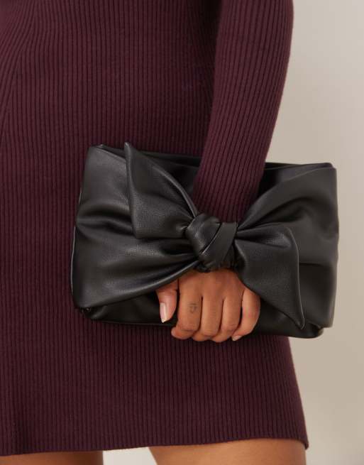 ASOS DESIGN – Svart kuvertväska med stor rosett framtill