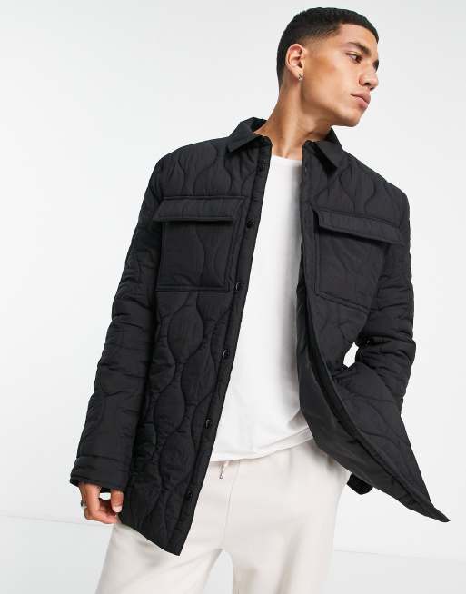 ASOS DESIGN – Svart, kviltad overshirt med dekorativ söm