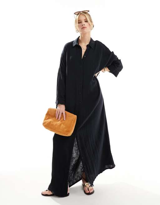 ASOS DESIGN – Svart, lång skjortklänning i dubbelt tyg