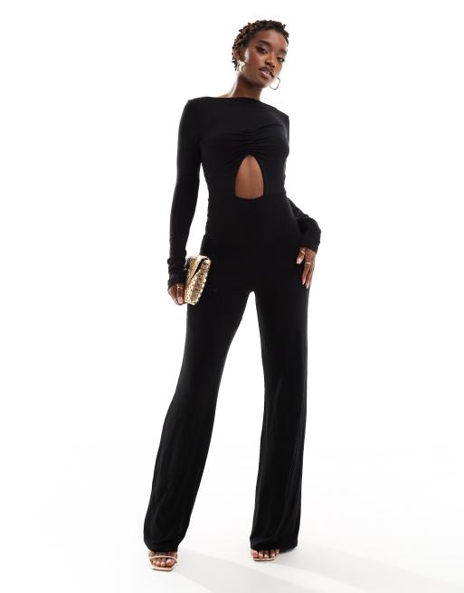 ASOS DESIGN – Svart, långärmad jumpsuit med nyckelhålsöppning
