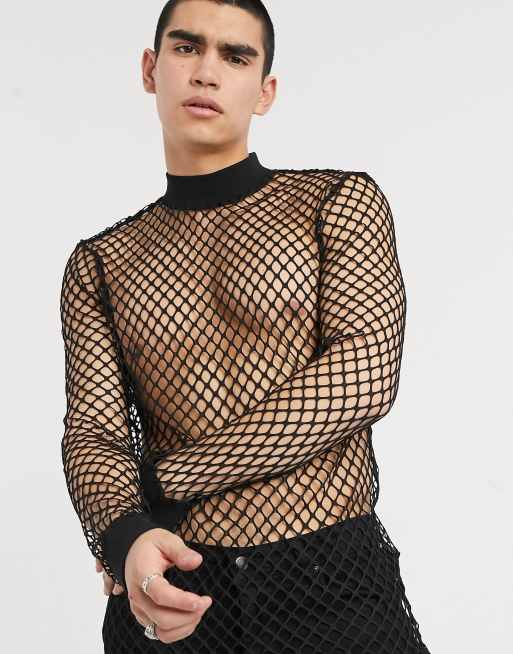 ASOS DESIGN – Svart långärmad t-shirt i longline med öppen mesh