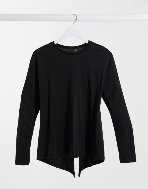 ASOS DESIGN – Svart långärmad t-shirt med slits baktill