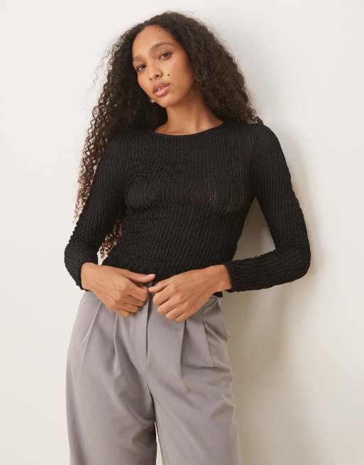 ASOS DESIGN – Svart långärmad volangtopp med textur
