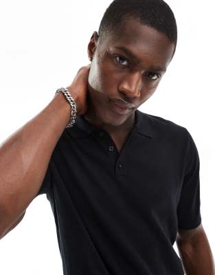 ASOS DESIGN – Svart, lätt, stickad pikétröja i bomull