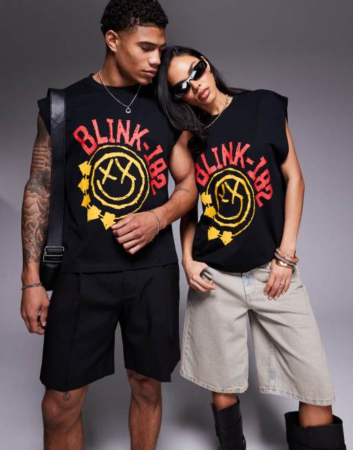 ASOS DESIGN – Svart linne i oversize och unisex-modell med boxig passform och Blink 182-tryck