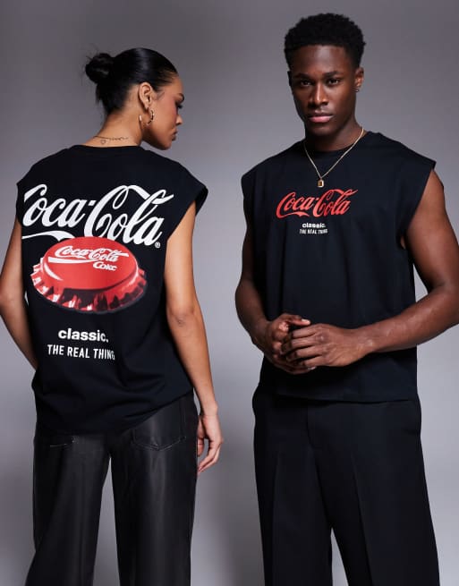 ASOS DESIGN – Svart linne i oversize och unisex-modell med boxig passform och Coca-Cola-tryck