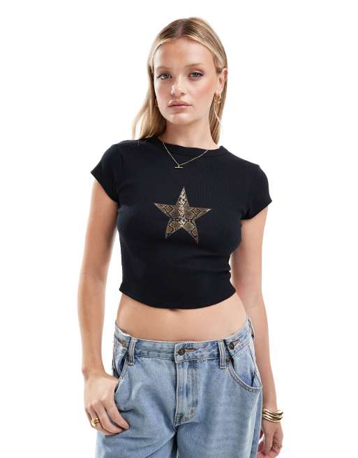 ASOS DESIGN – Svart, liten t-shirt med ormskinnsmönstrat stjärntryck