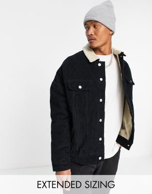 ASOS DESIGN – Svart manchesterjacka i cowboystil och oversize med foder och krage i teddy