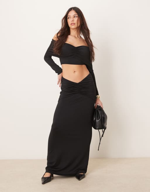 ASOS DESIGN – Svart maxikjol i mesh med rynkning och indragen v-formad midja, del av set