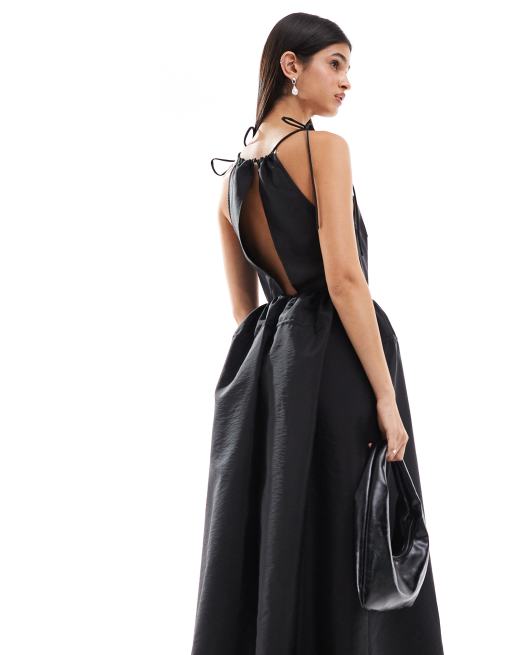 ASOS DESIGN – Svart maxiklänning i fallskärmsmodell med hög krage och utskurna detaljer på sidan