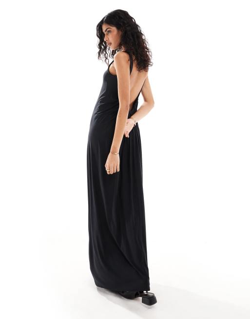 ASOS DESIGN – Svart maxiklänning med rysch och lågt skuren rygg