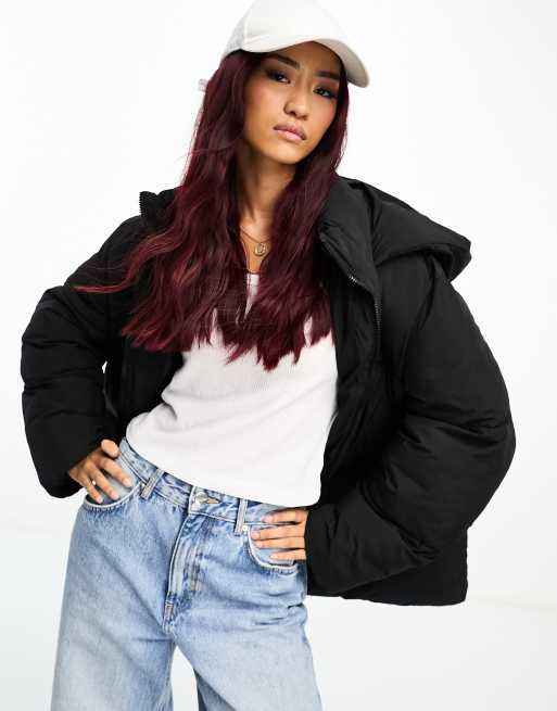 ASOS DESIGN – Svart medellång pufferkappa med huva