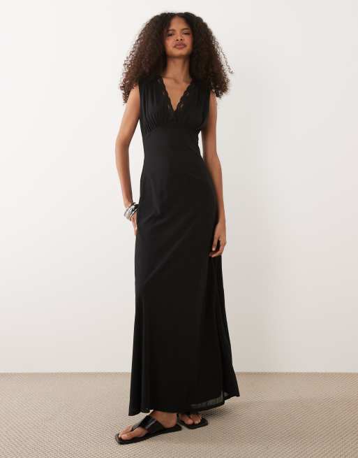 ASOS DESIGN – Svart midaxiklänning med djup ringning och spetskant