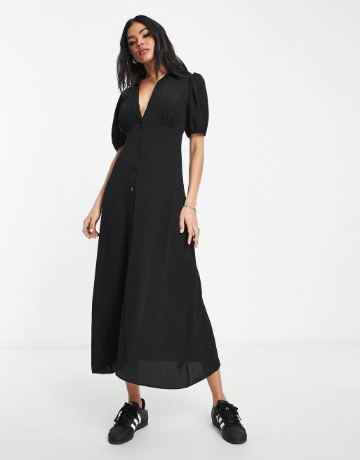 ASOS DESIGN – Svart midi-teaklänning i skjortstil med knäppning framtill