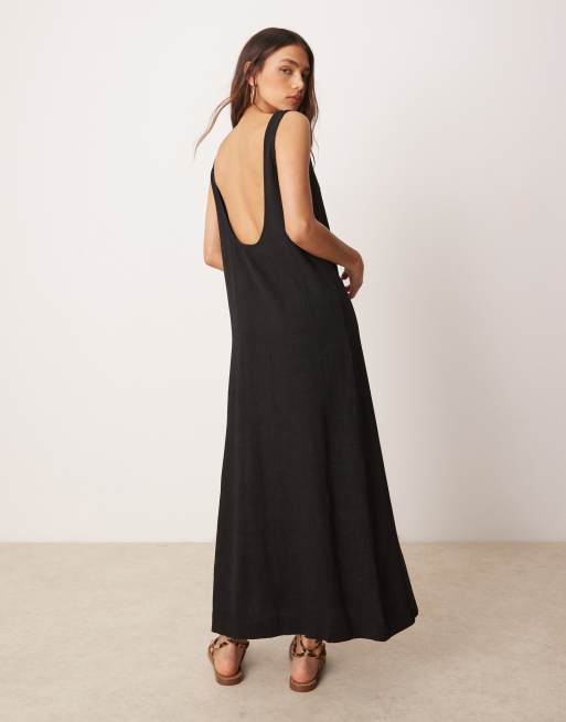 ASOS DESIGN – Svart midiklänning med djup halsringning i linnemix