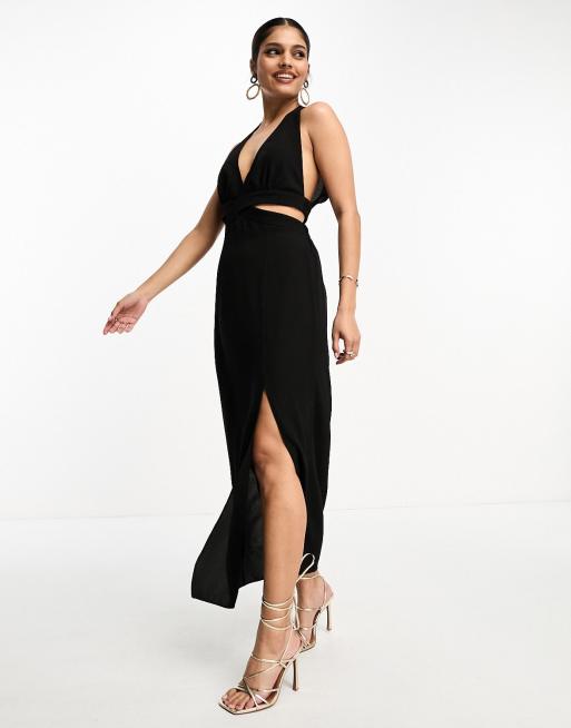 ASOS DESIGN – Svart midiklänning med halterneck och utskurna detaljer